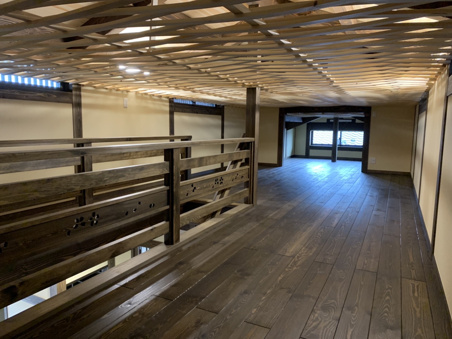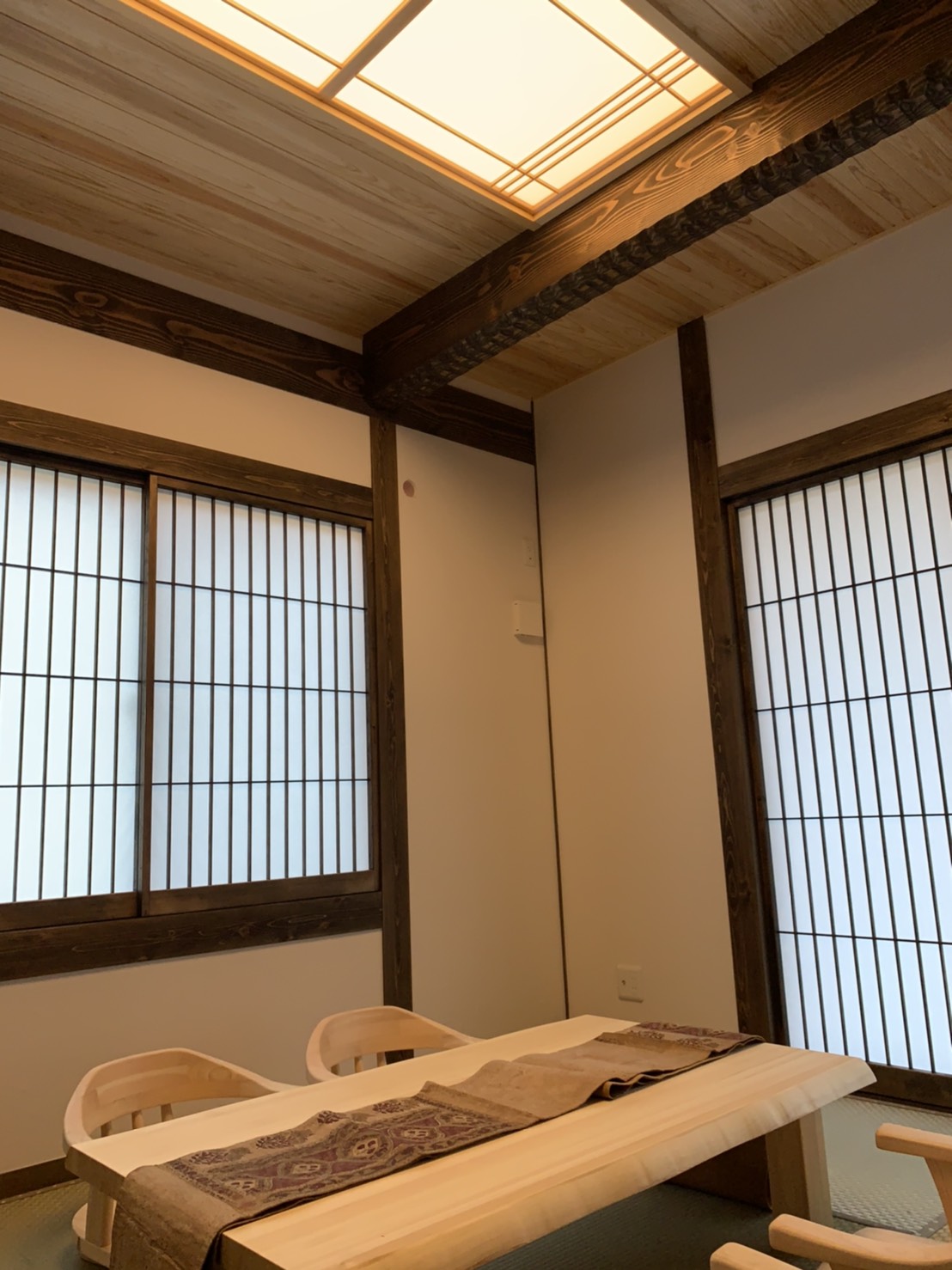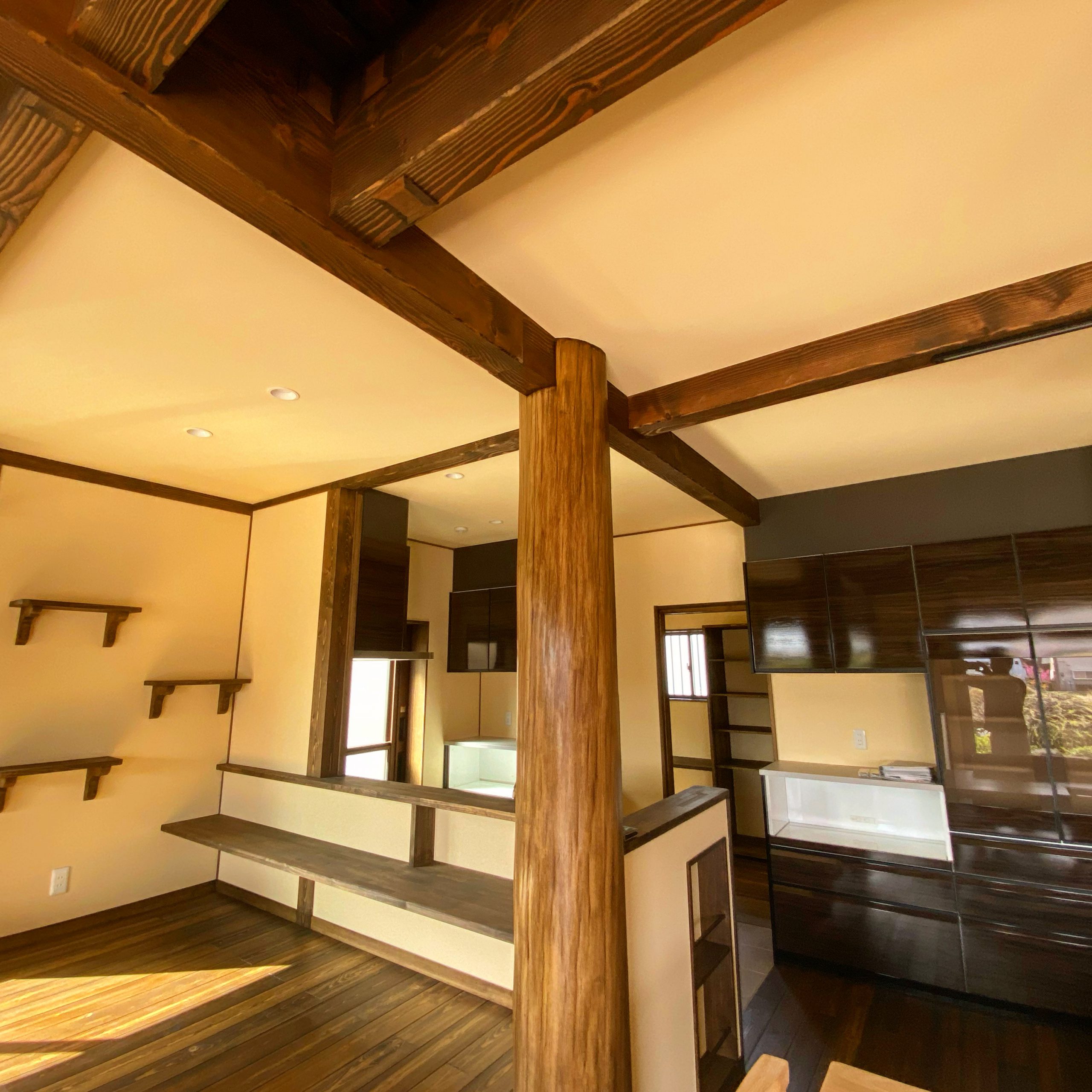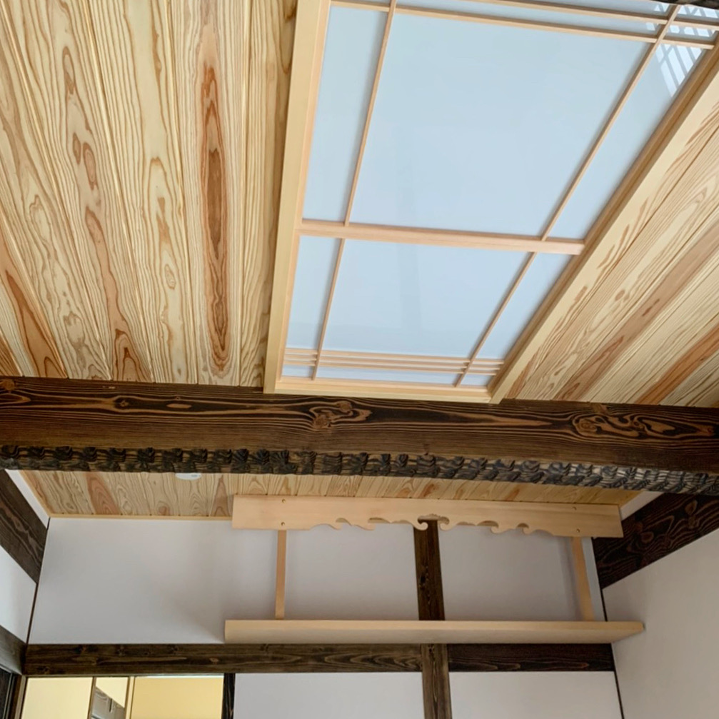 古民家調の色合いと天井の天然無垢のクリアな色合いのバランスがすごく綺麗でした❗️