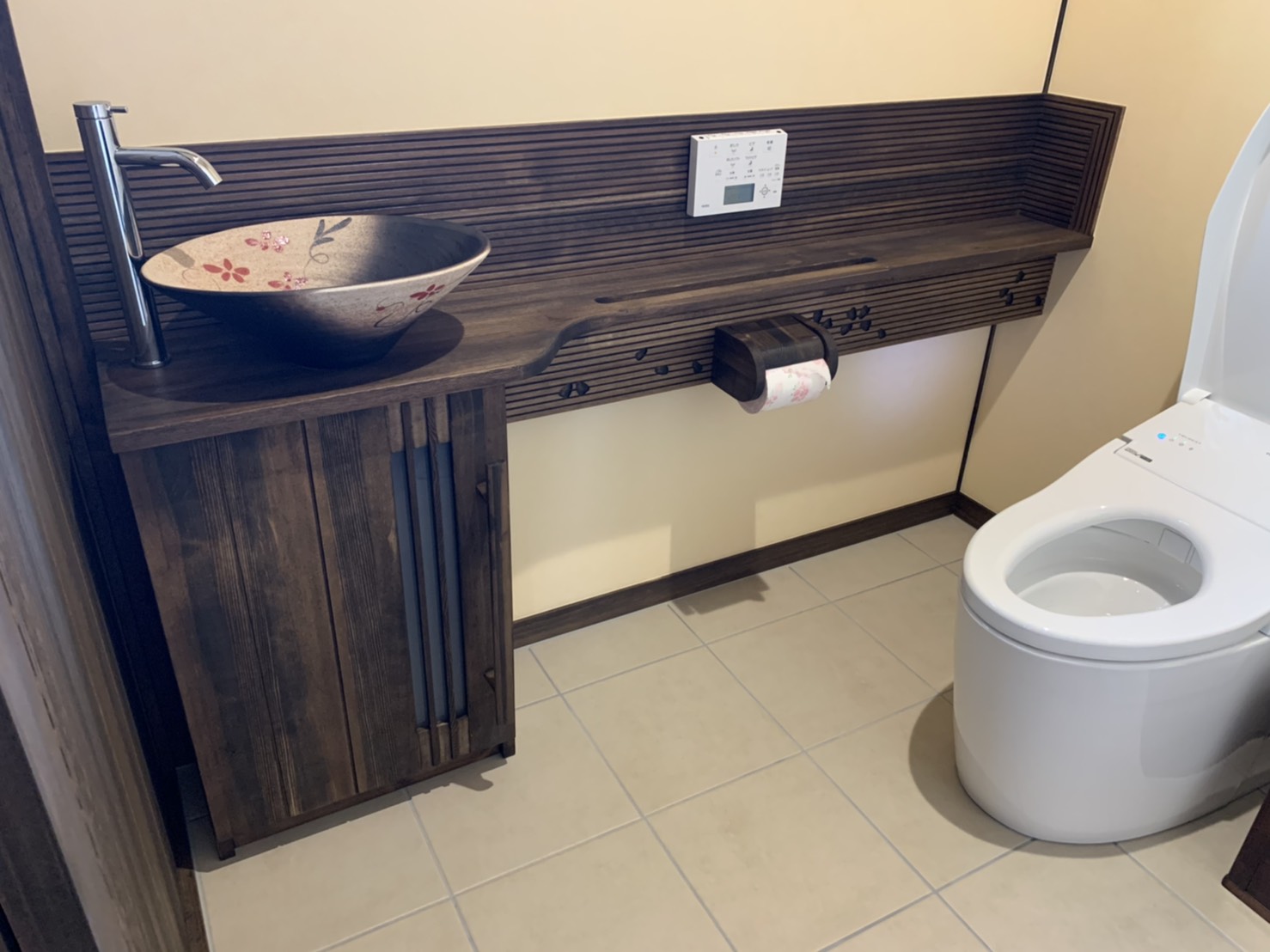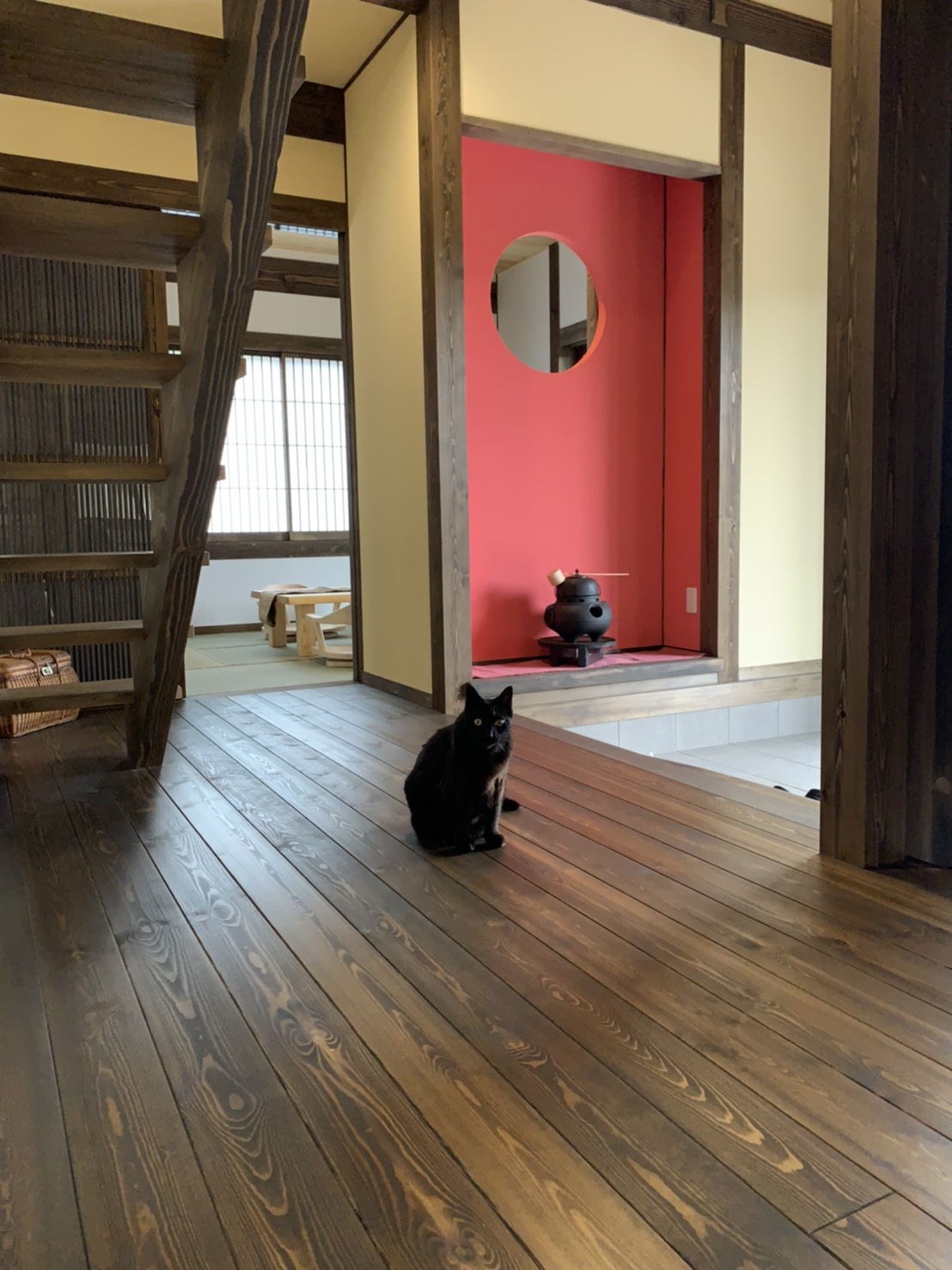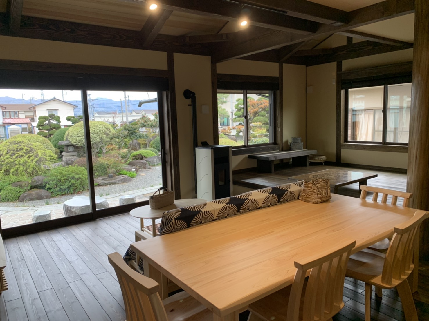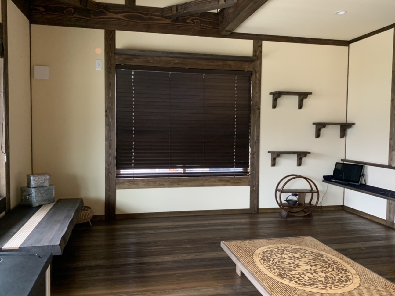 古民家調の色合いと天井の天然無垢のクリアな色合いのバランスがすごく綺麗でした❗️