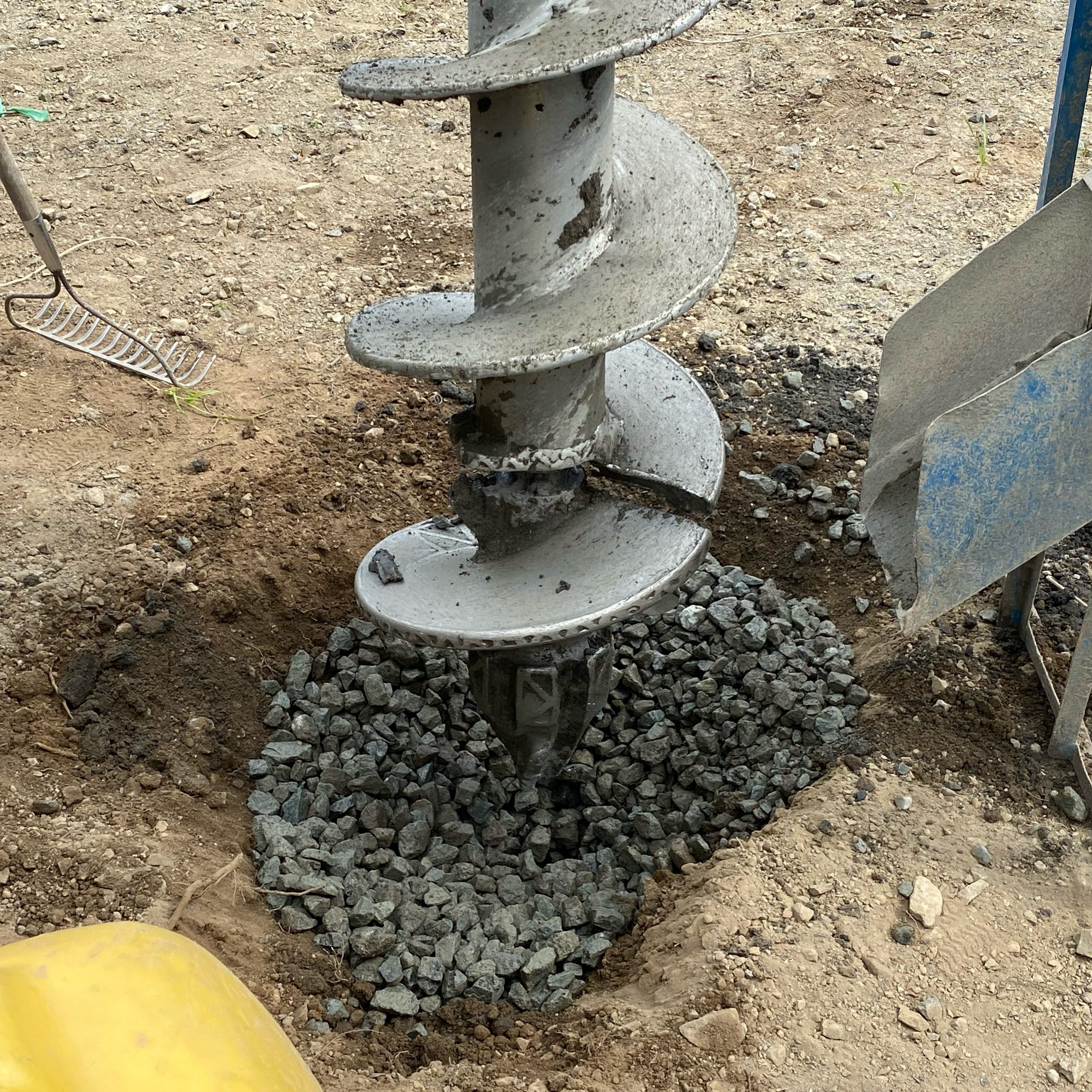 その穴に砕石を流しこんで地盤の改良を行います。(砕石の柱を地中に作るイメージです!)
