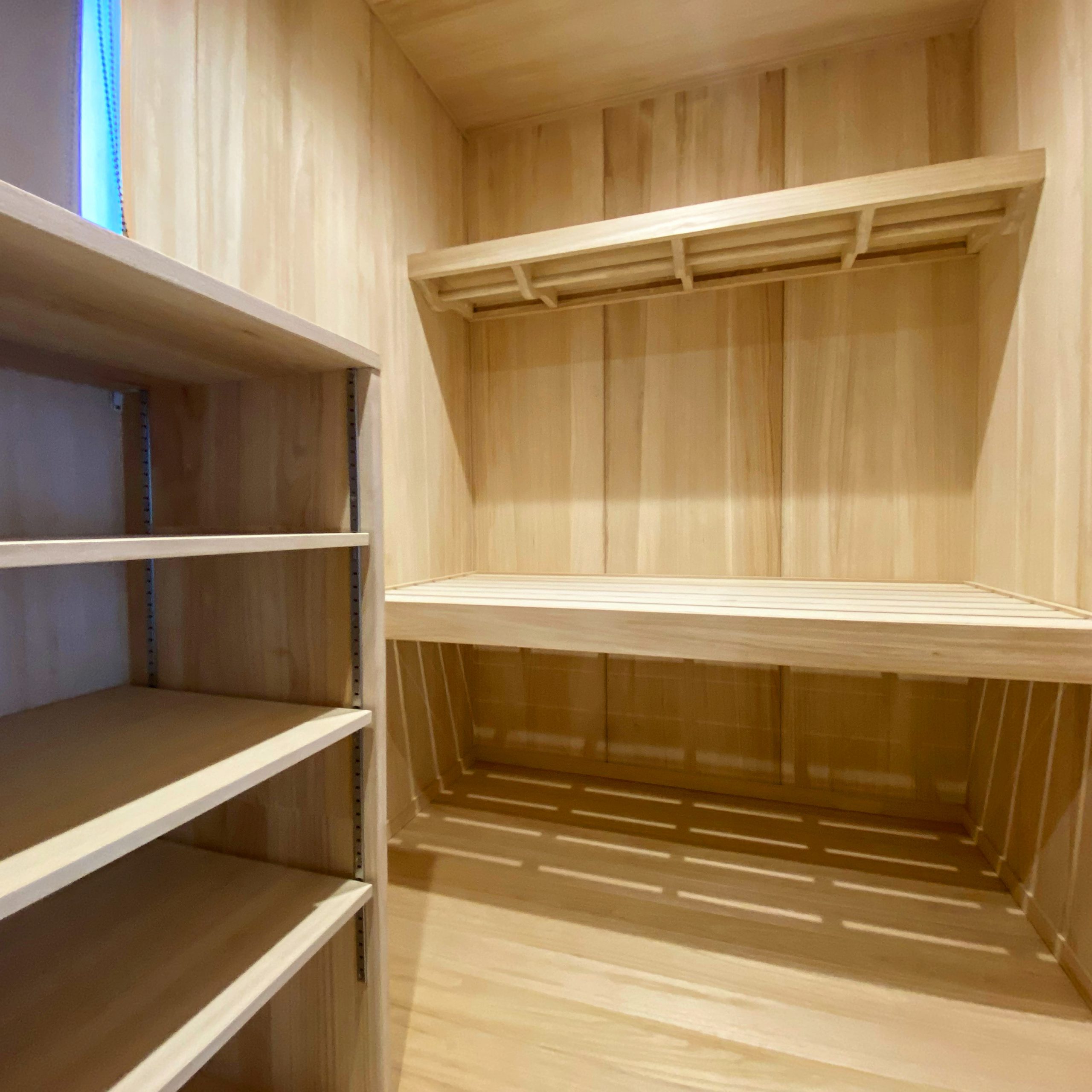 収納スペースは棚や床、天井と全て桐を標準仕様!