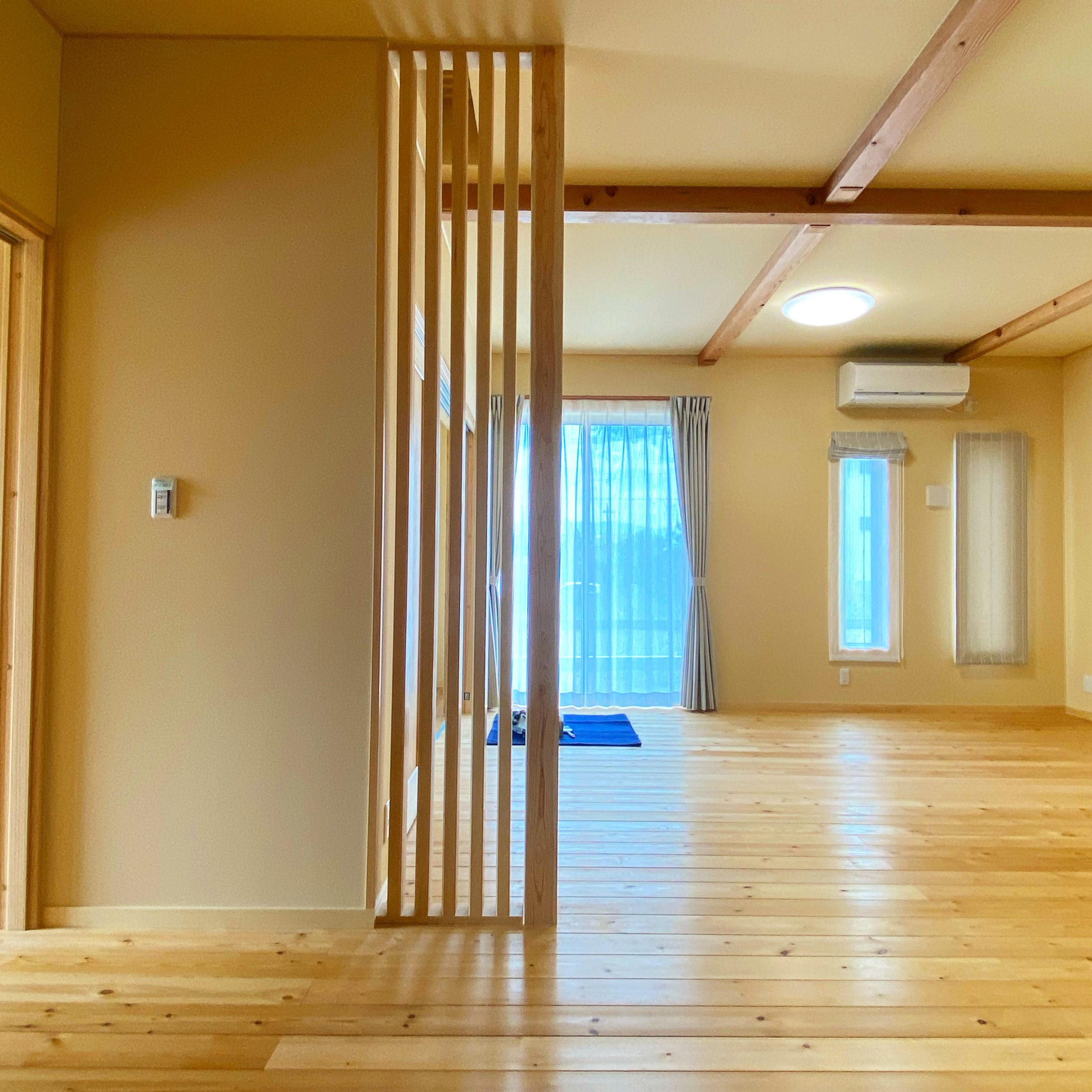 先日3組のお客様をご案内させて頂き天然無垢の赤松床の肌ざわりが気持ちいいと仰っておりました❗️