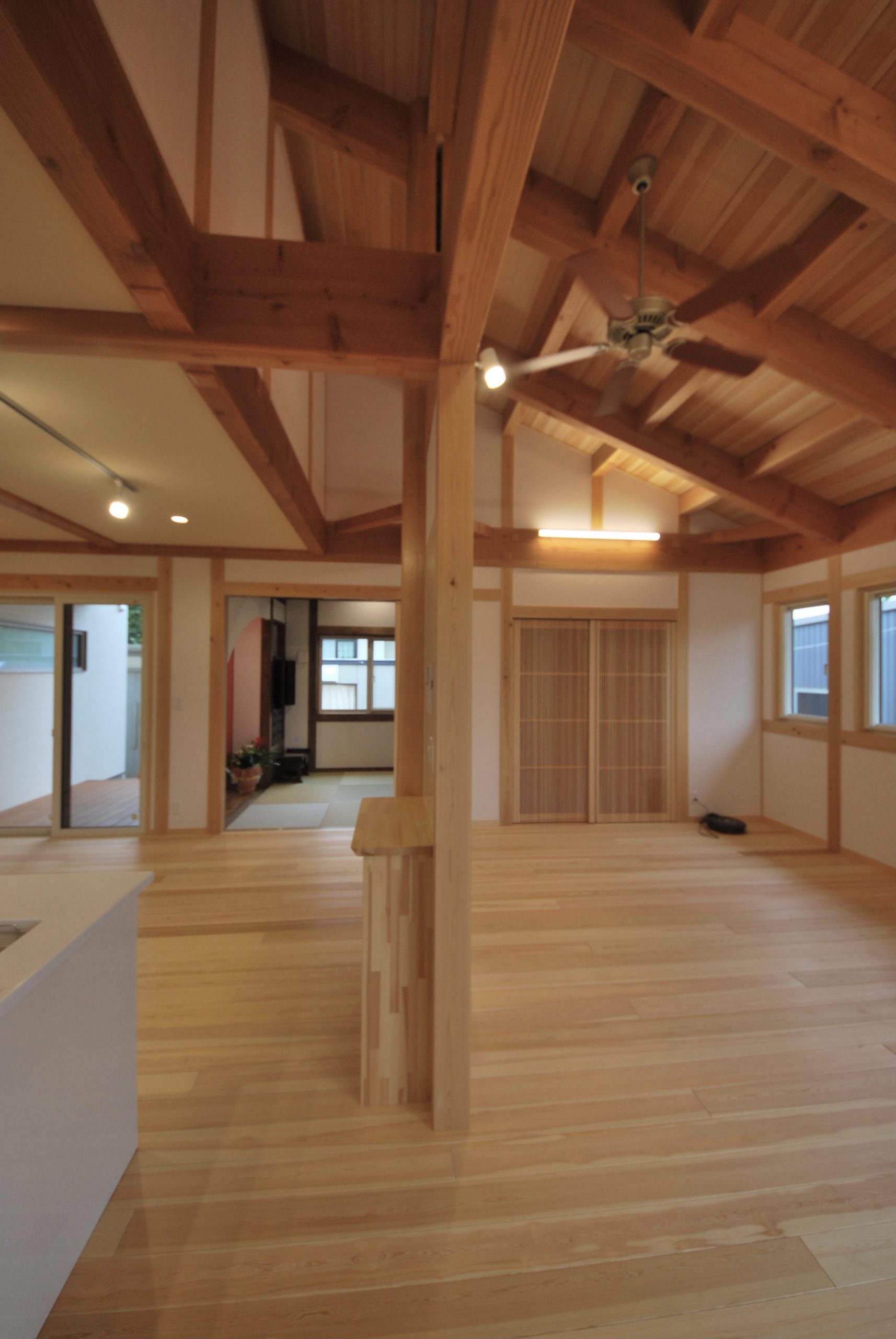 60坪の平家の家をご紹介させて頂きます!木に包まれた大きなリビングは窓を開けると風が心地いい自然と調和する空間となっております❗️