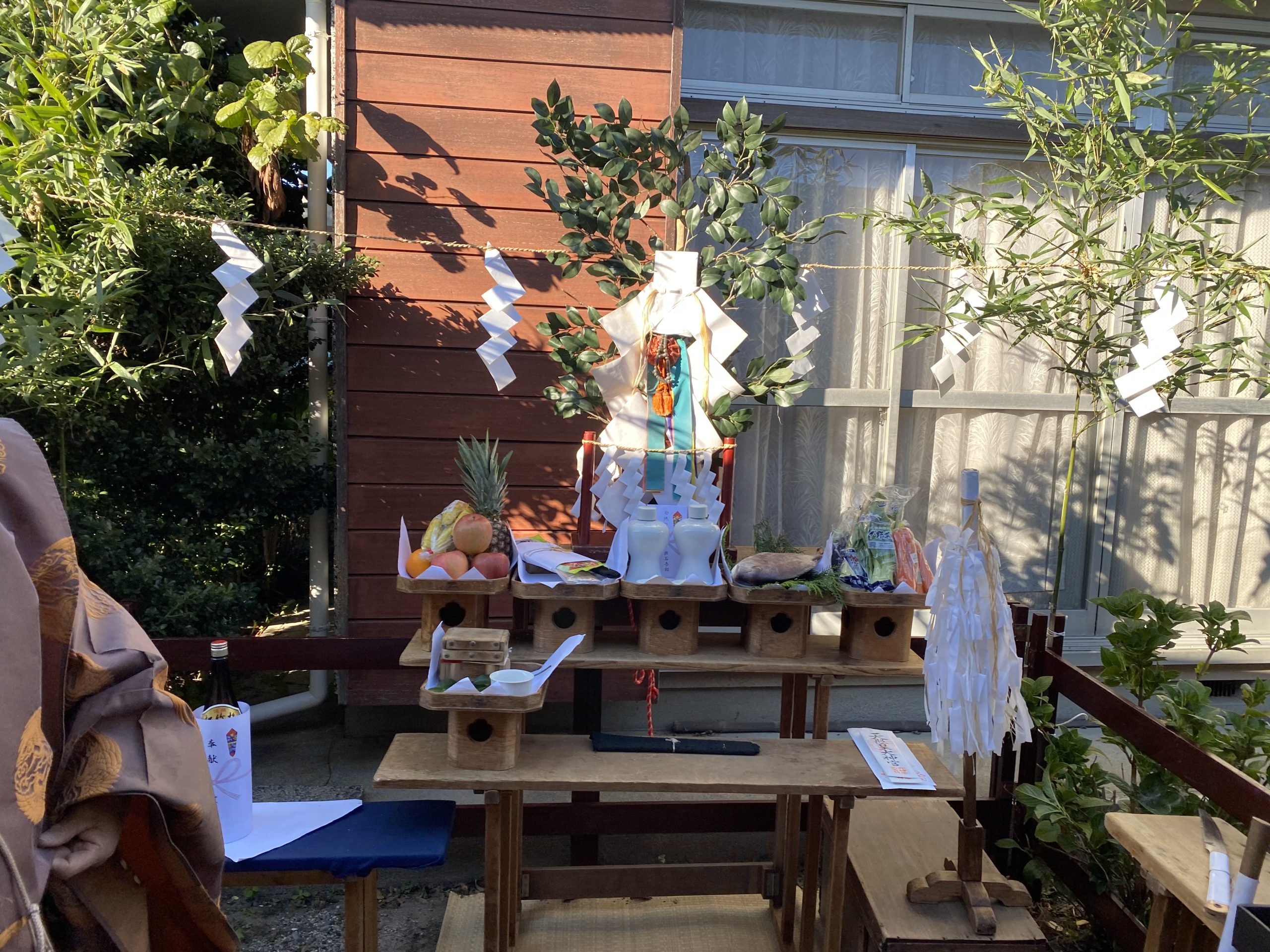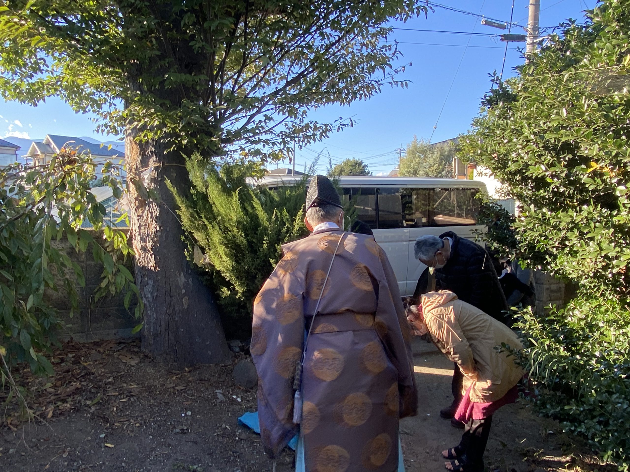 解体すると言う事は単純に壊すだけではありません。その前に棟切祭を行い、屋敷神様や伐採する樹木もお浄め致しました。