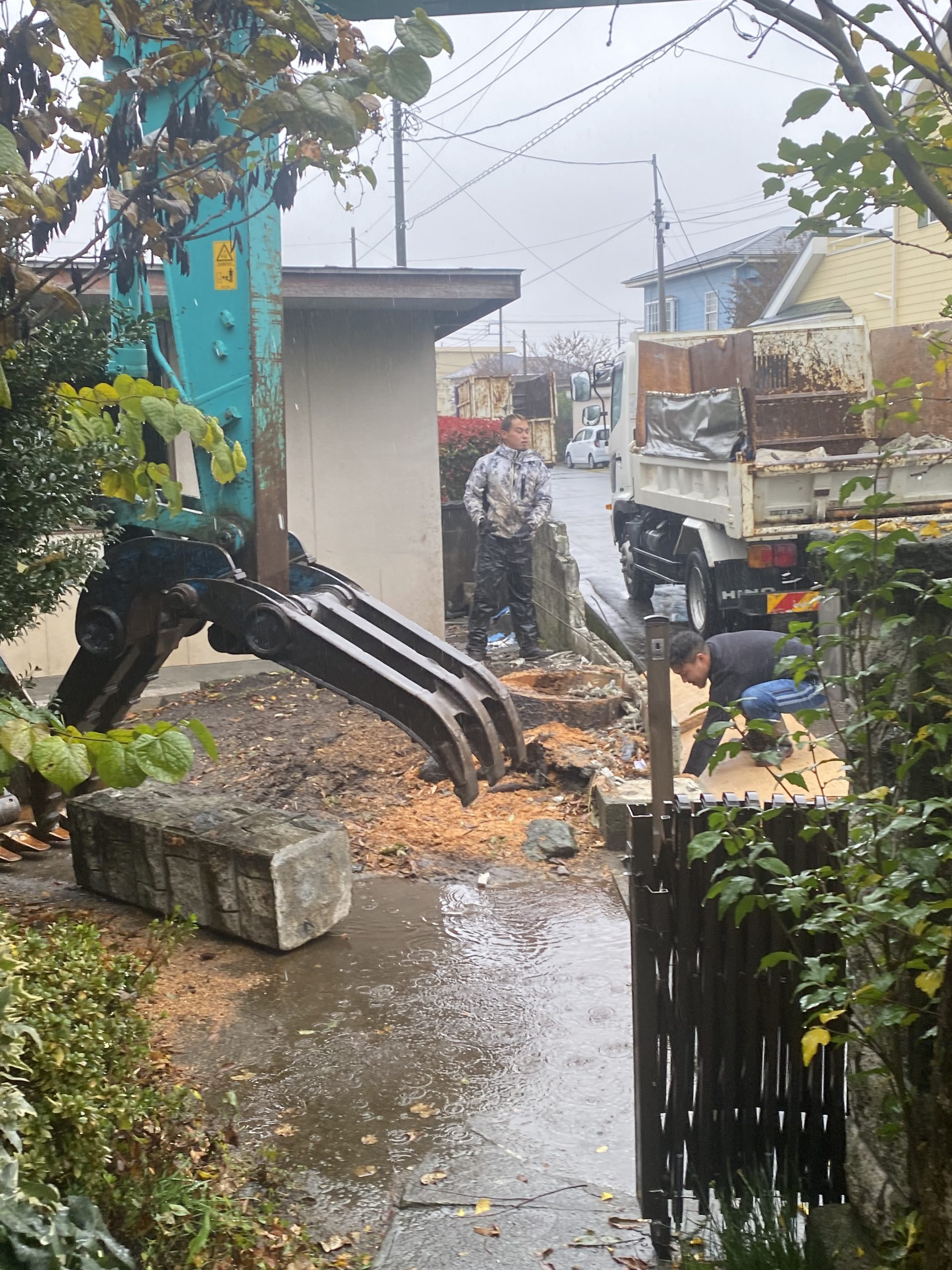 こちらのお宅には樹齢100年近いケヤキがあり、新築工事をするうえで伐採することになりました。
