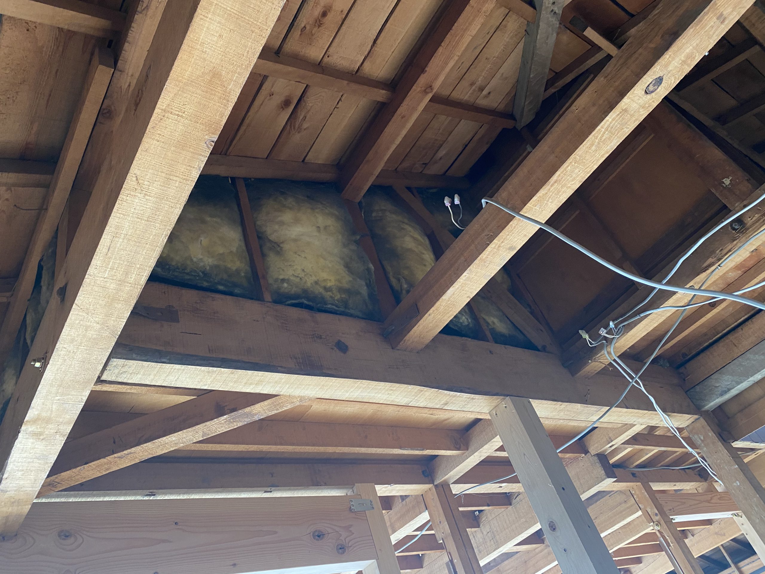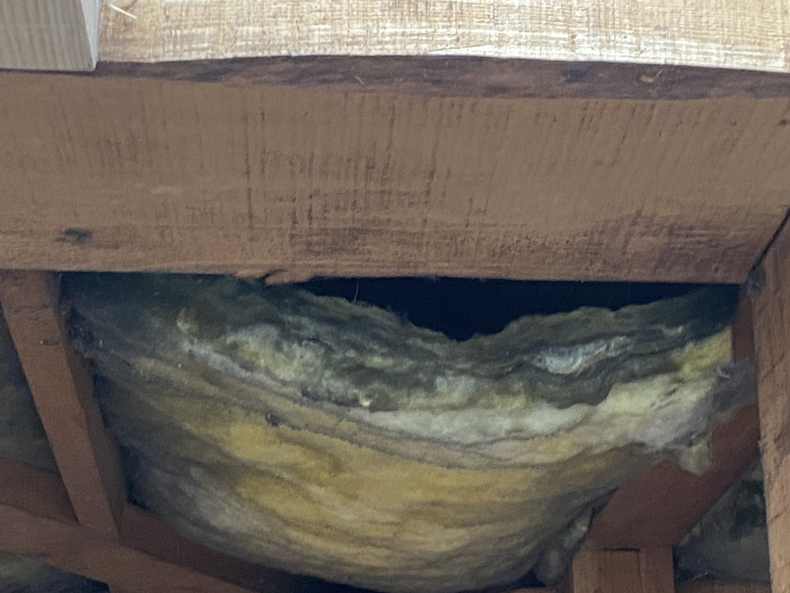 こちらはリフォームをしたお家の壁を剥がした後のお写真ですが、壁内の通気が十分でなく、断熱材のグラスウールがカビだらけで、湿気を吸った重みで垂れてしまい断熱材の意味が無くなっておりました。