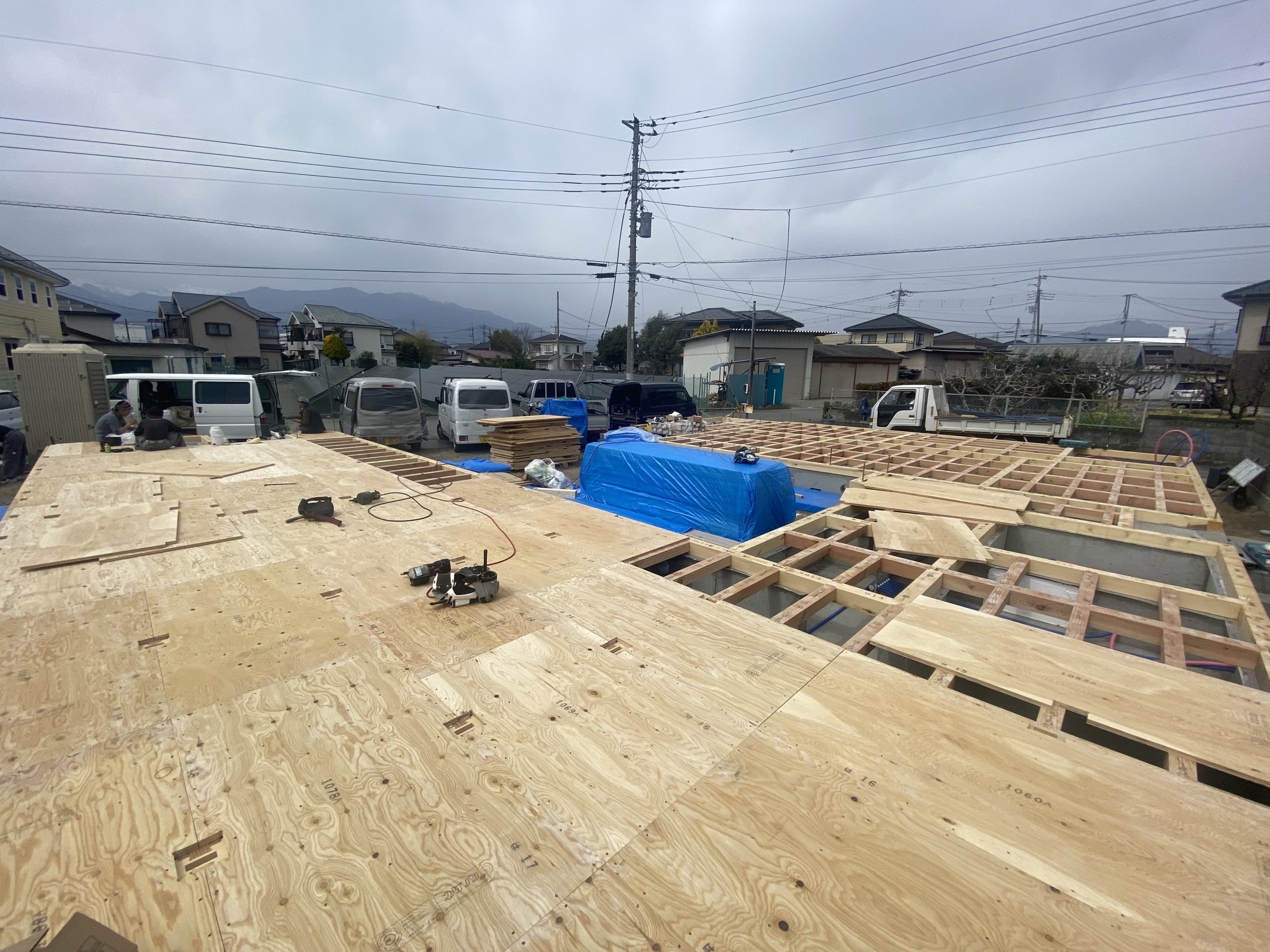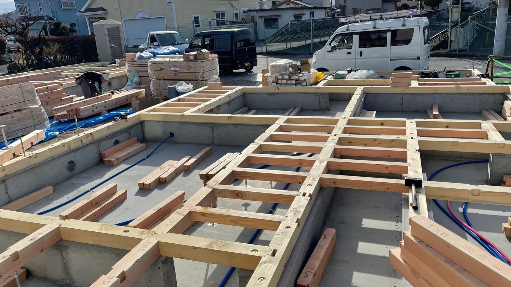今回は昭和町の2世帯住宅の土台敷き・建て方をご紹介させて頂きます✨