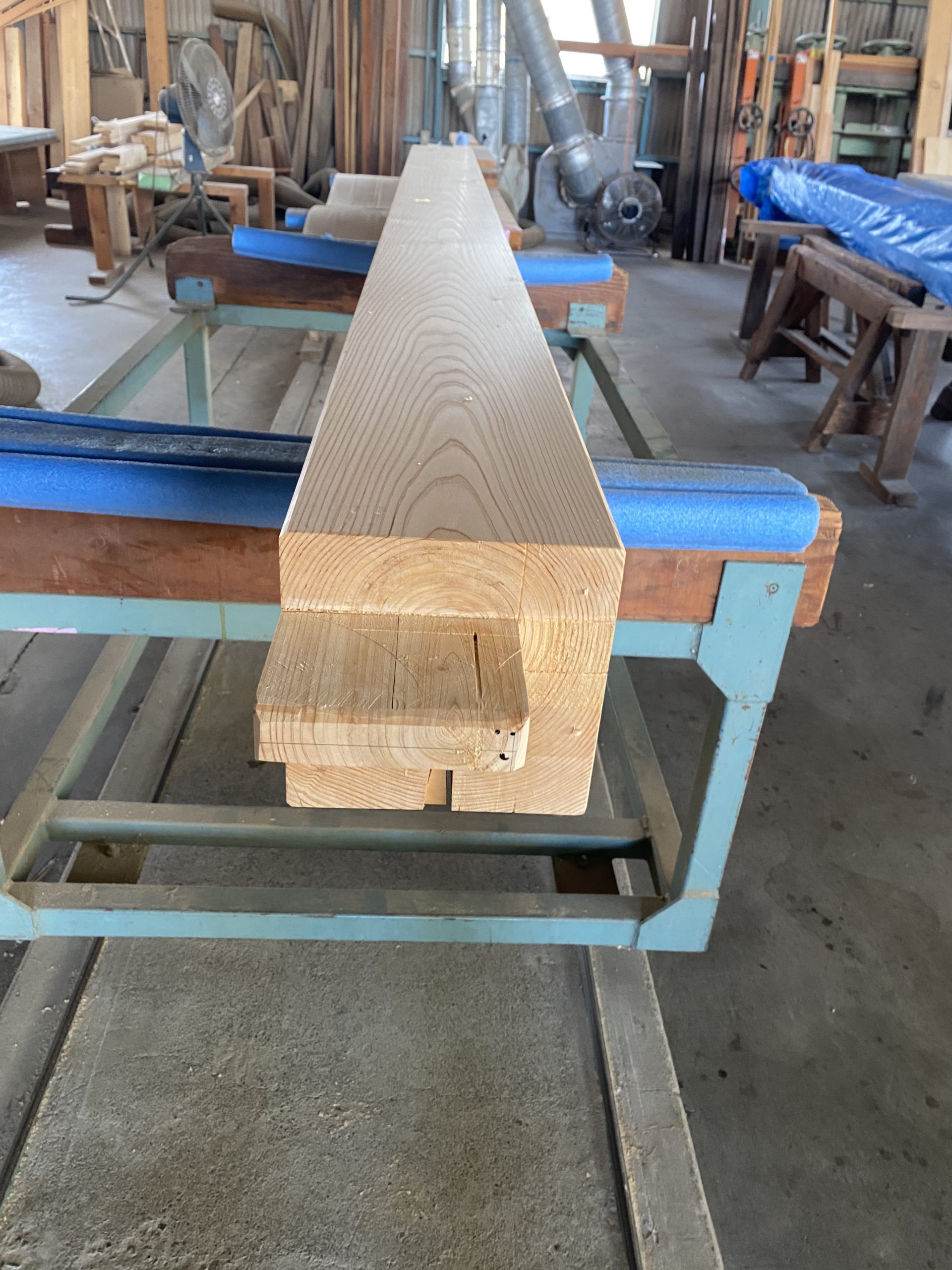 杉丸太柱や大きな角柱(檜)は手刻みで加工します✨