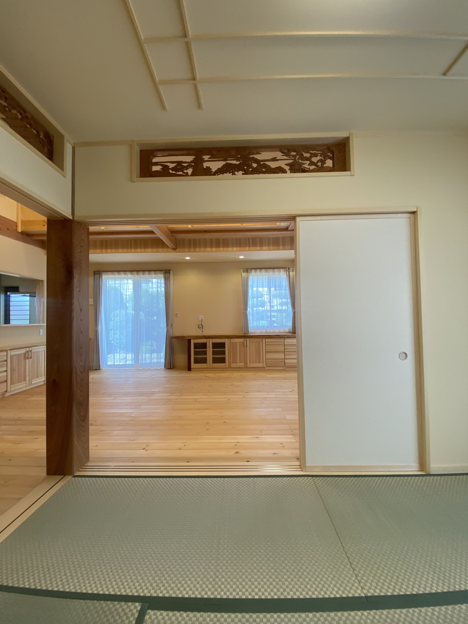 こちらのお家は以前のお家の再利用する欄間等を外す所から建て方の現場作業と私も手伝わせて頂き、また現場も最初から最後まで見させて頂いて完成したのが感慨深いです🍀