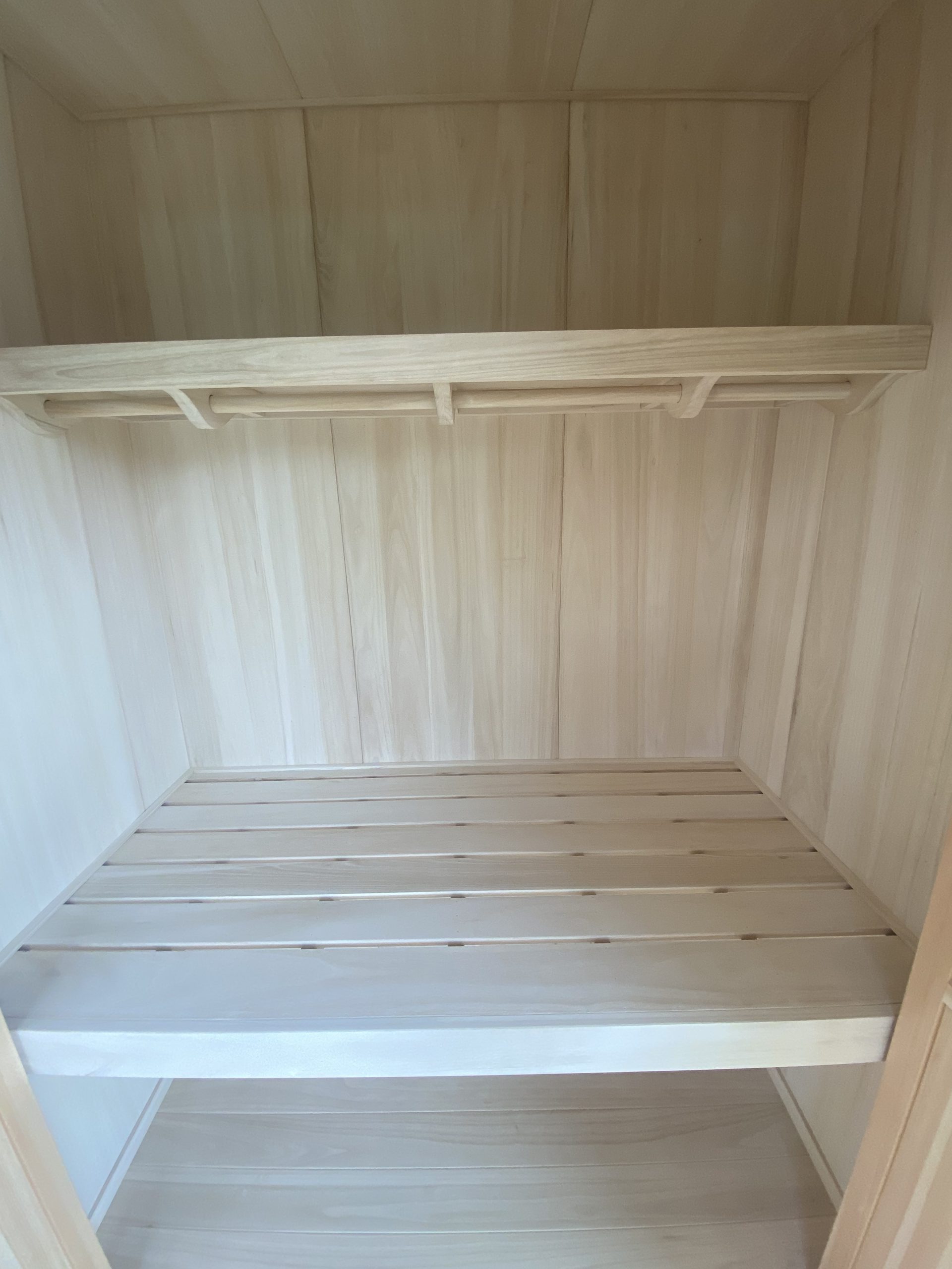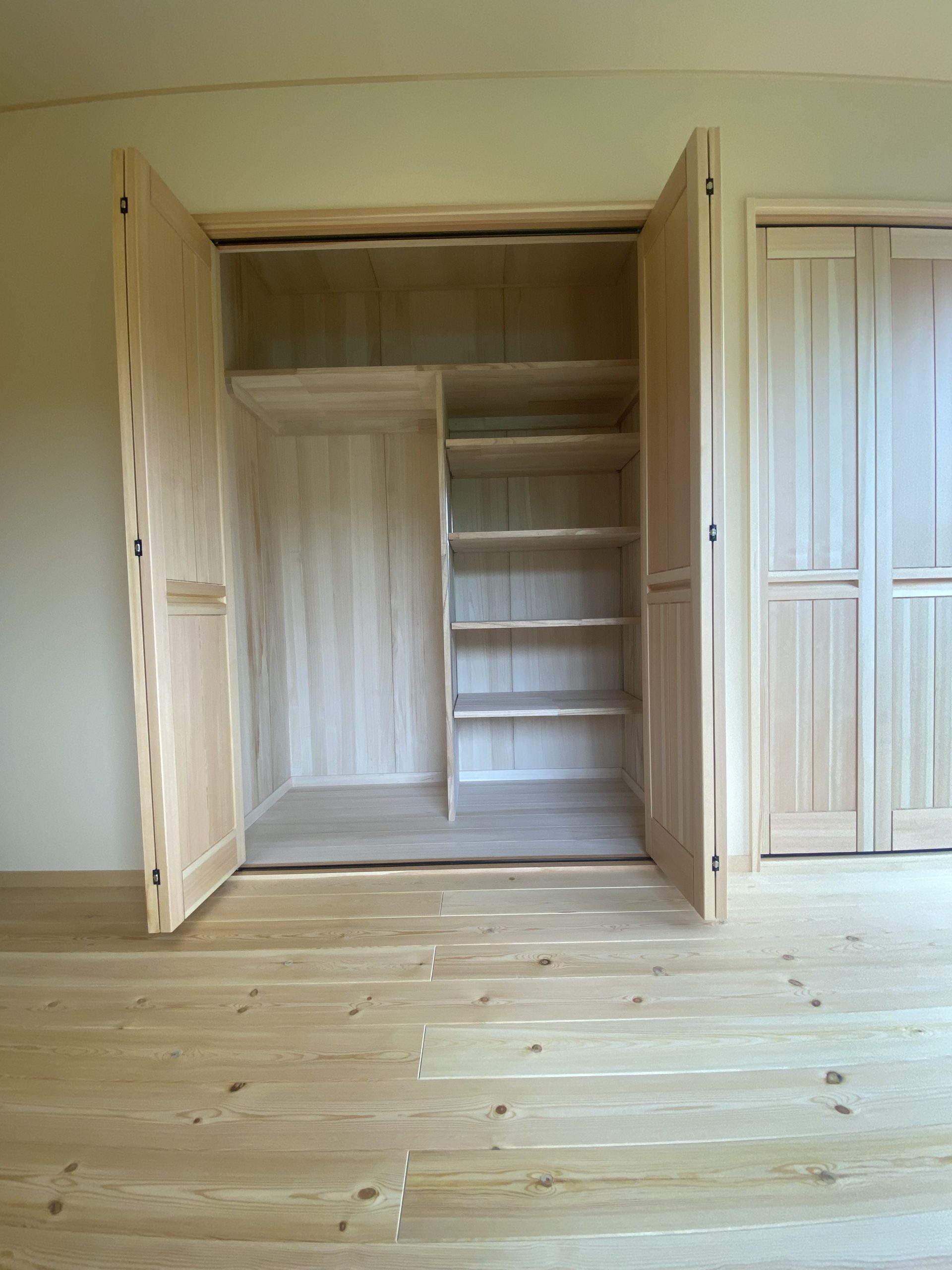 収納内部は総桐仕上げとなっており、これからの季節☔️のジメジメした湿気や防菌・防カビ予防として最適な木材です!(桐タンスを部屋にしたイメージ)