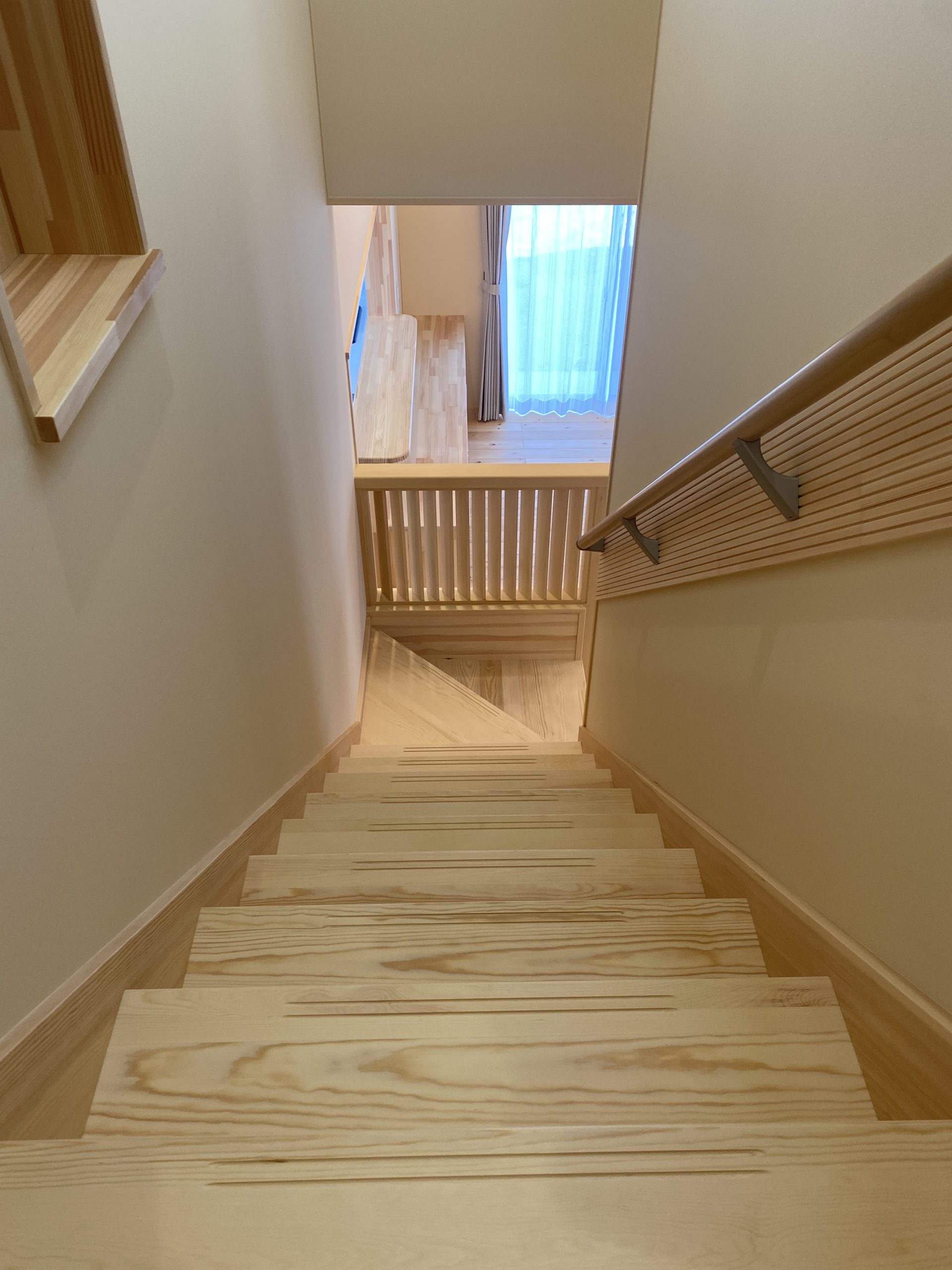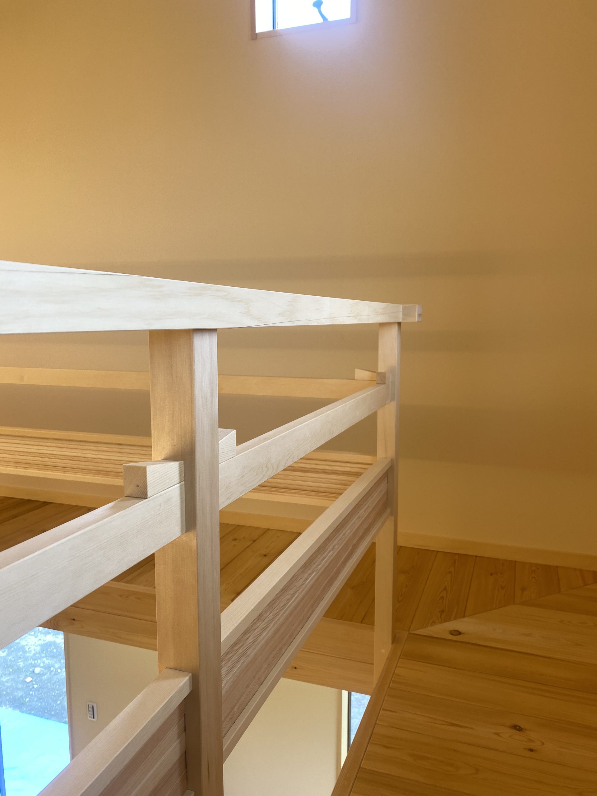 階段手摺の格子は斜めに組む事で立体感が出ておりました🔨