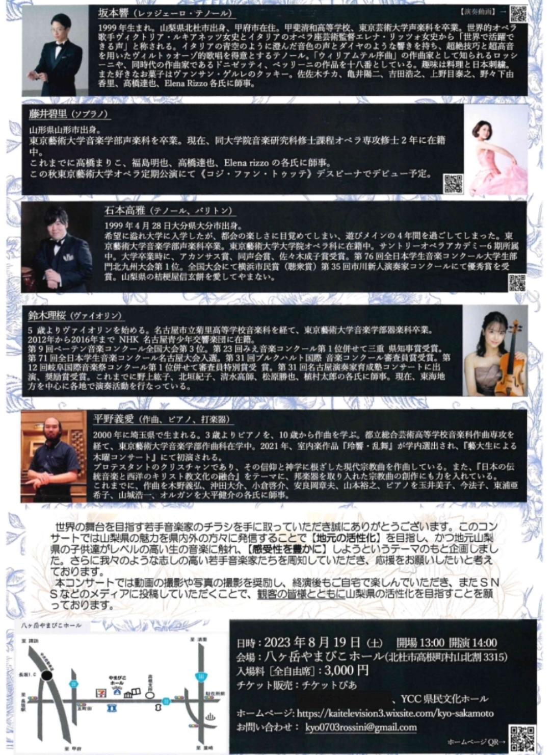 お客様の息子様がクラシックコンサ-トを開催するという事で