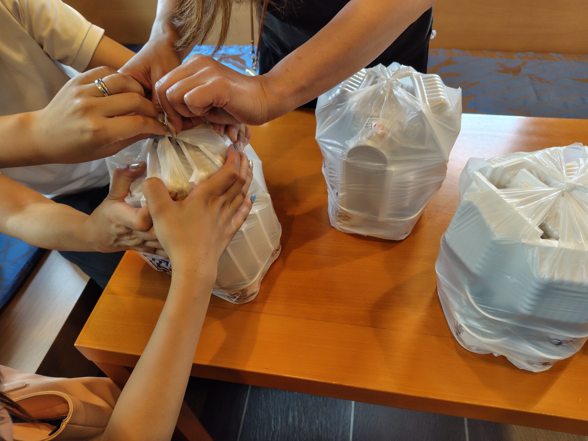 誰が一番多く詰められるのか、今年は袋を縛らないといけないルールもあり