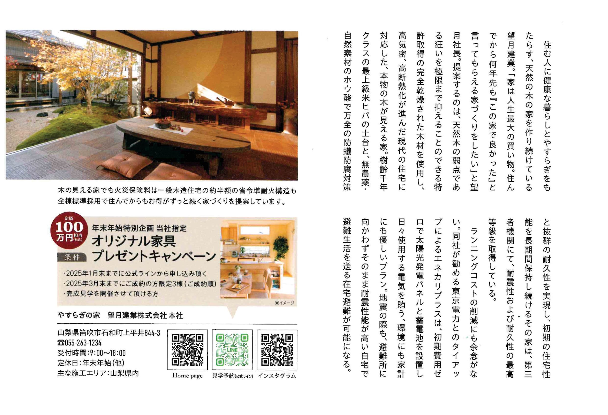 条件を満たした方に、定価100万円相当(税込)当社指定の家具をプレゼントいたします。