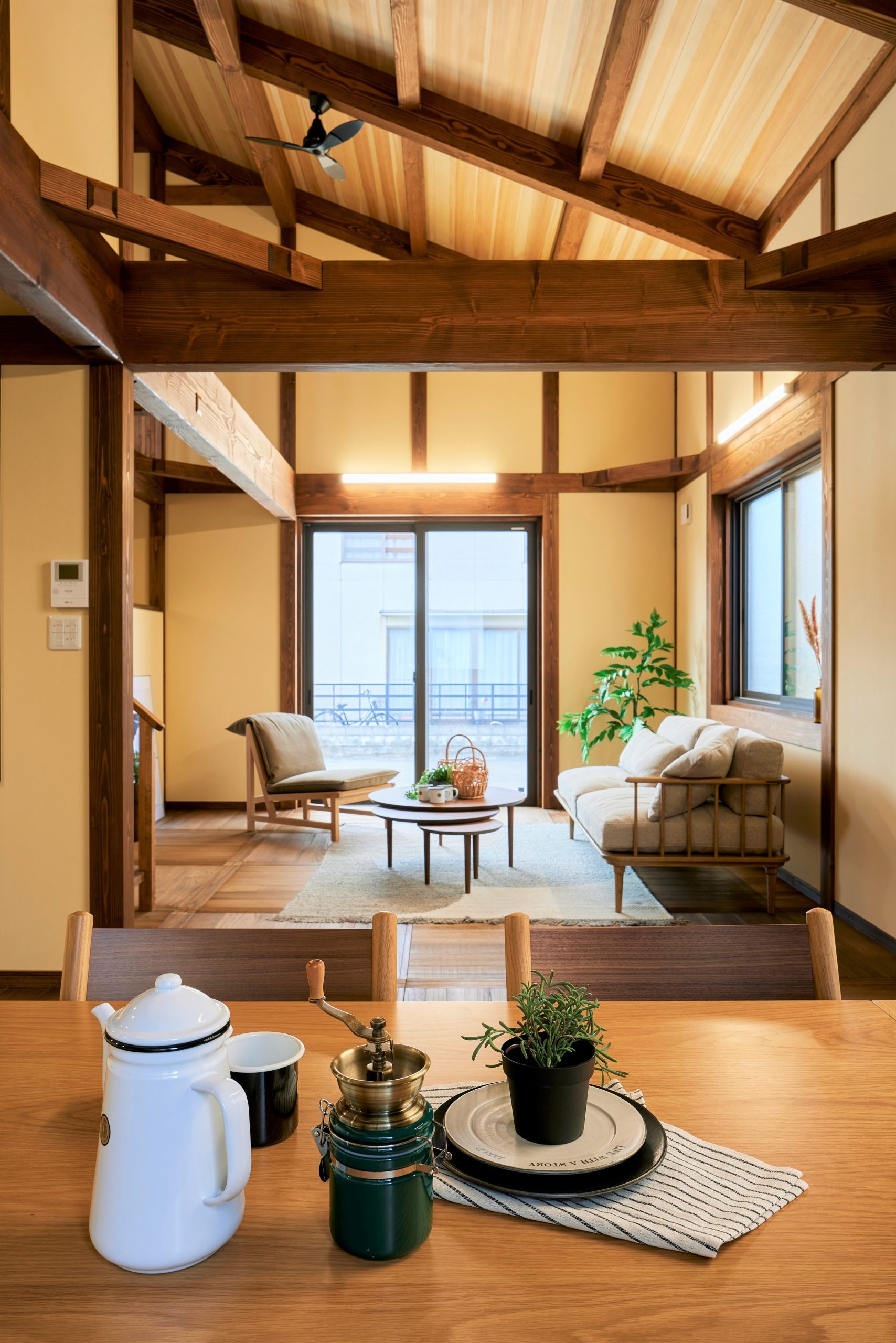 新築住宅・和風笛吹市「古民家テイストの曲り梁が馴染む、モダンな吹抜けの家」