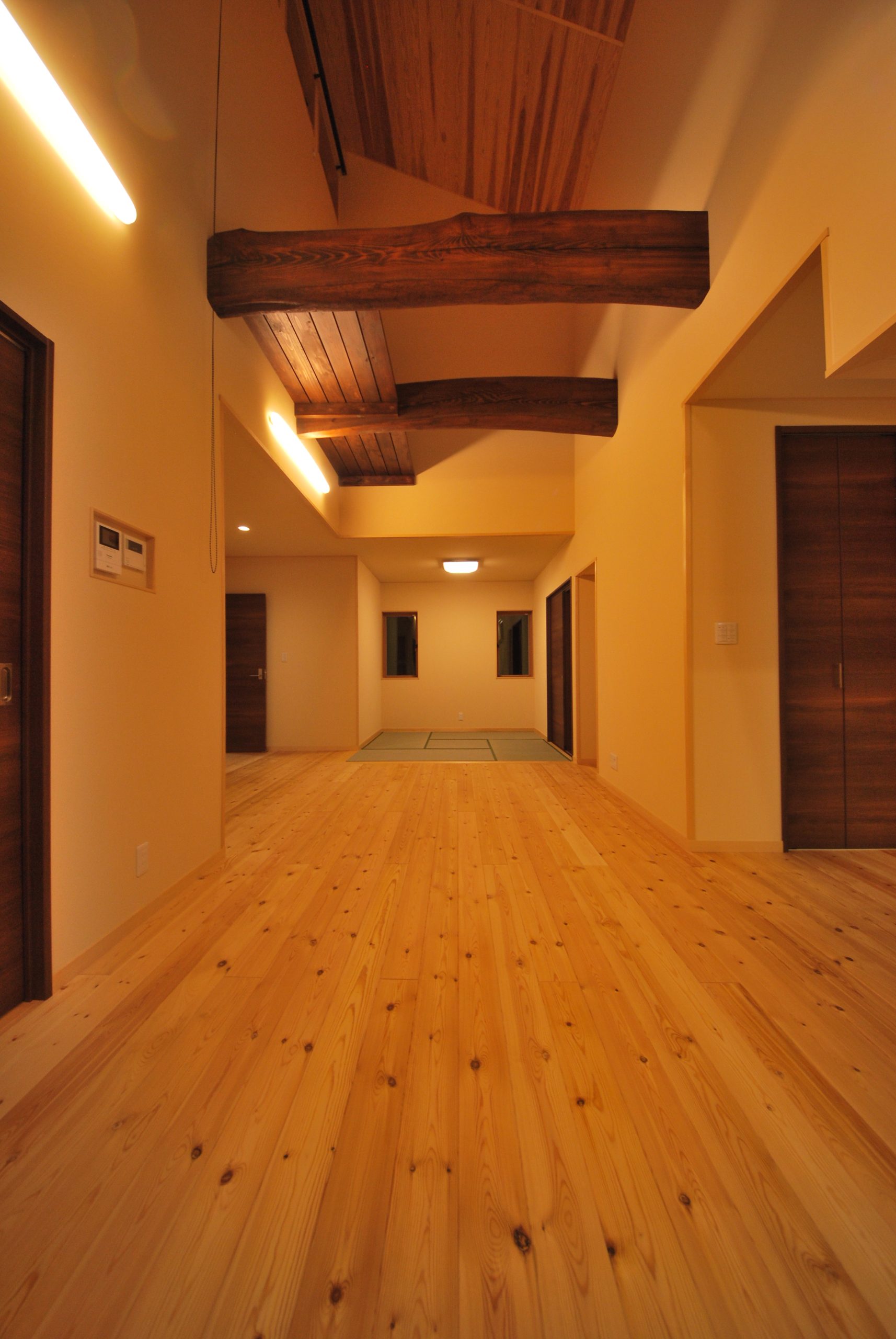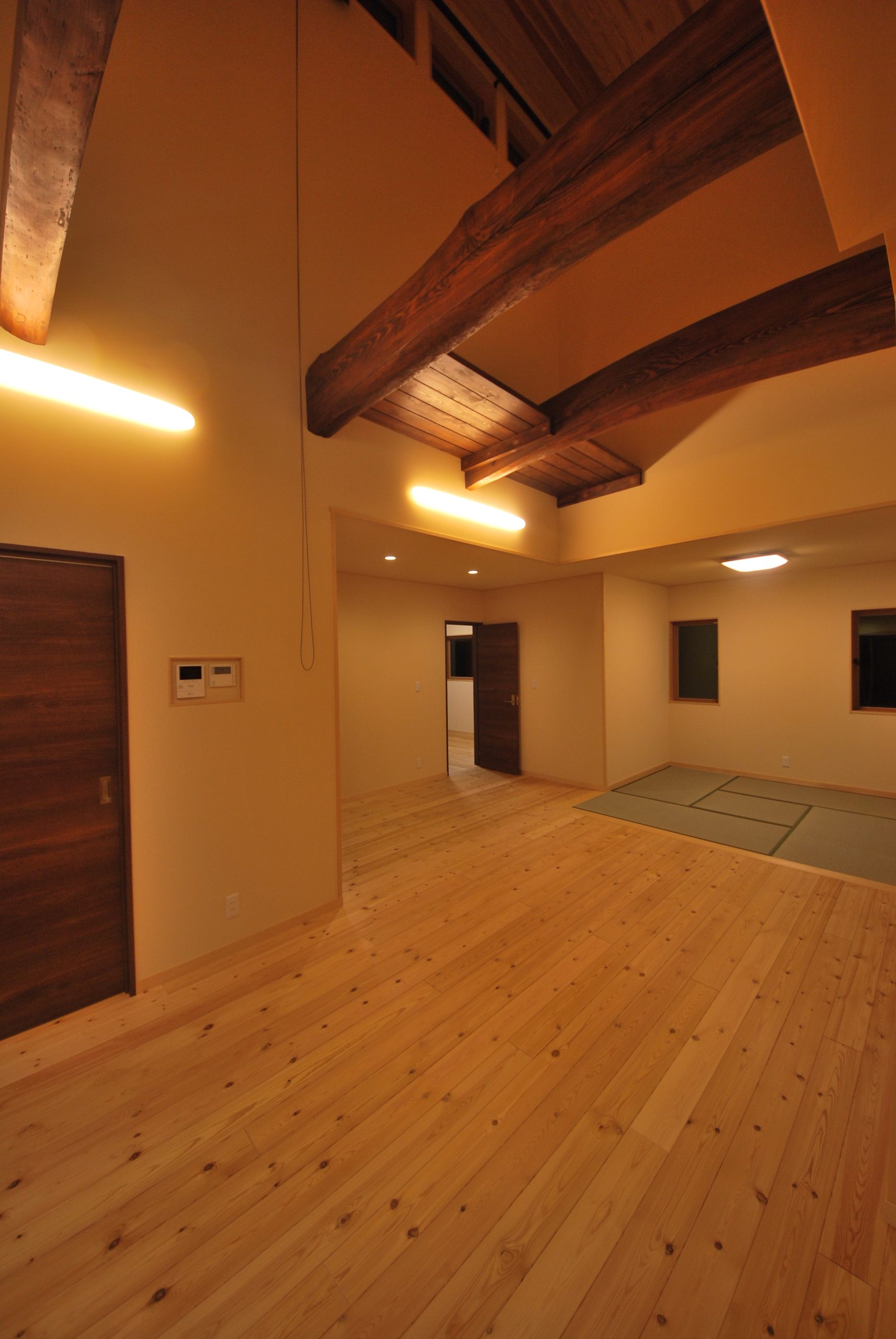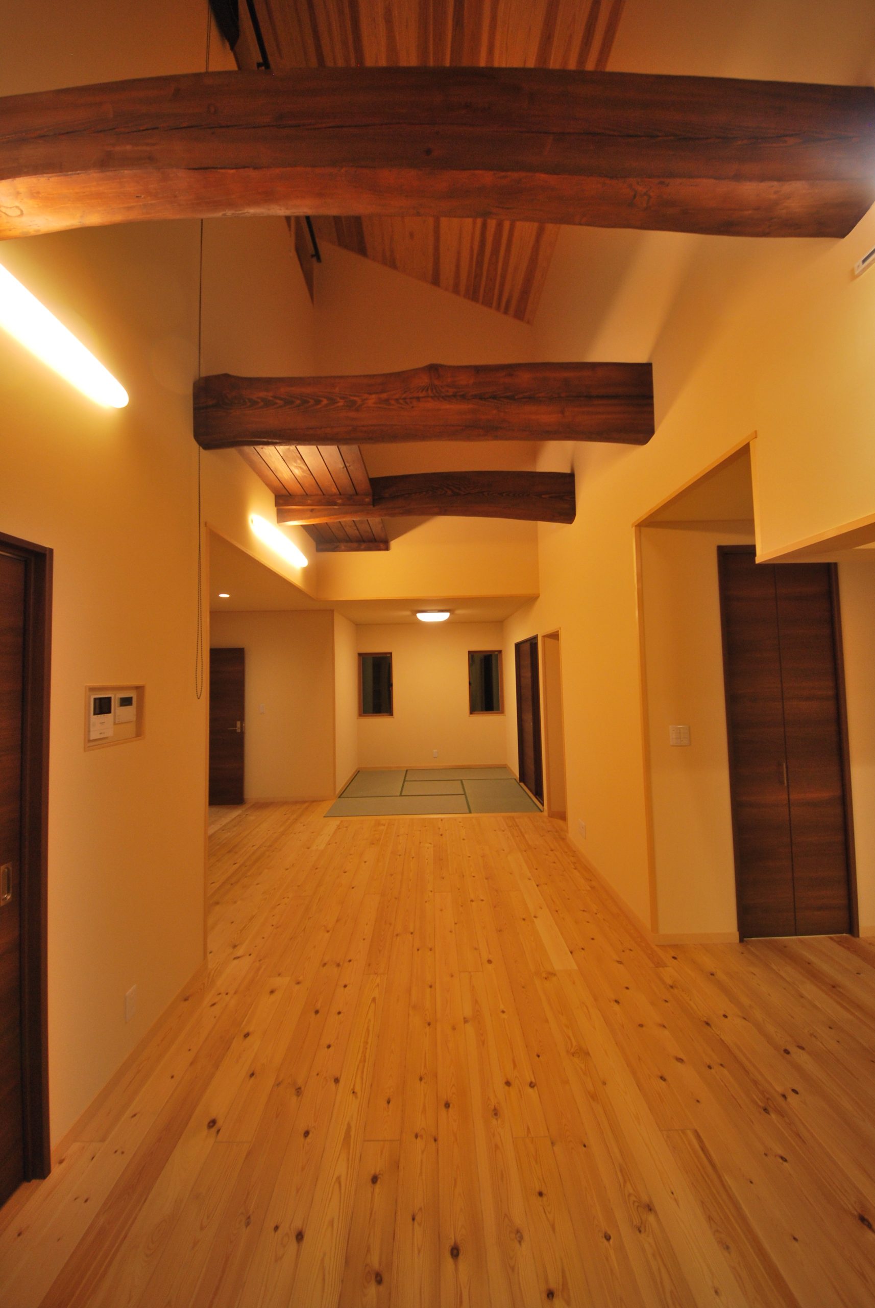 笛吹市「古民家テイストの曲り梁が馴染む、モダンな吹抜けの家」
